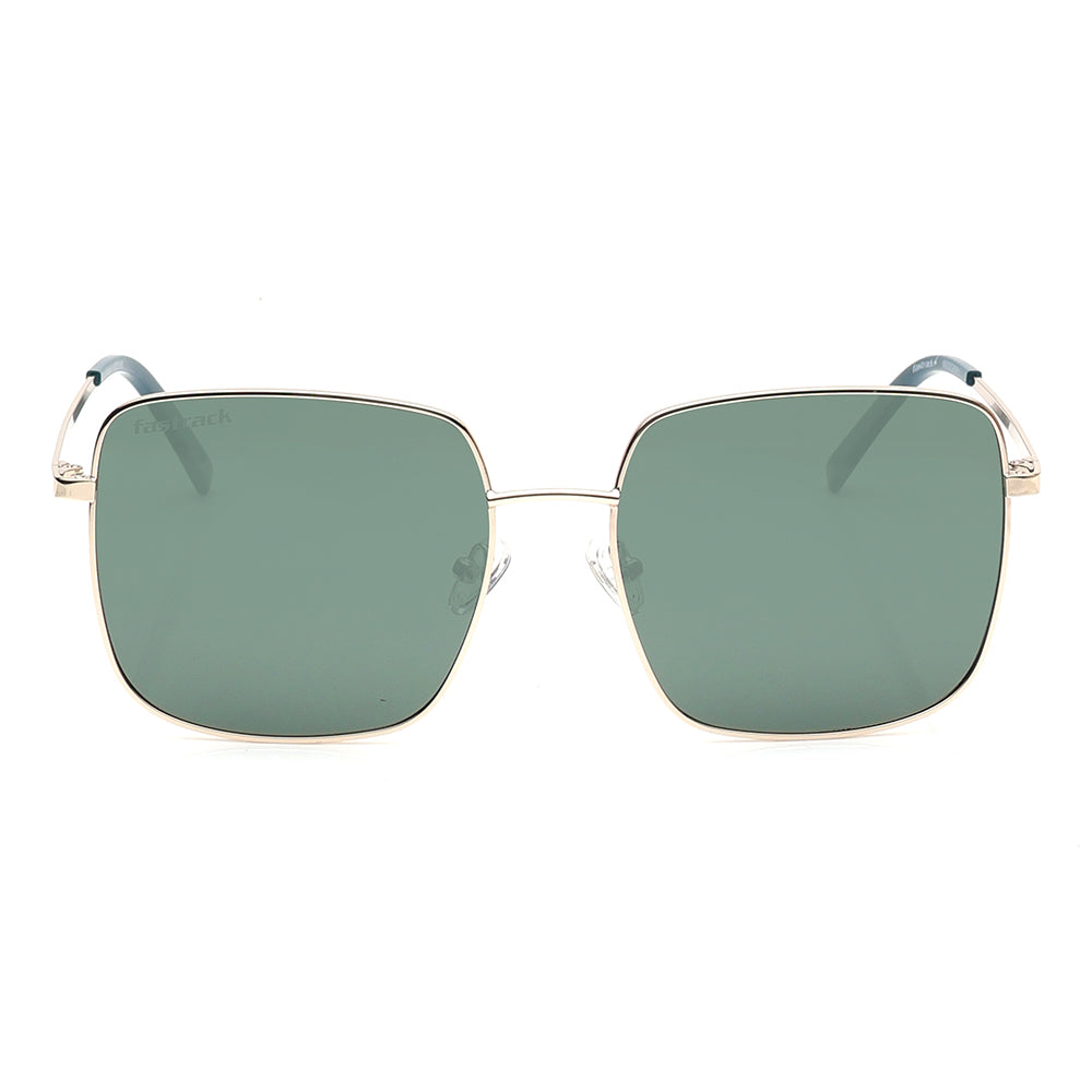 The Fastrack M8035GR3PV sunglasses bring together bold geometry and refined elegance, crafted for women who appreciate standout style with everyday comfort. Designed with a shiny gold stainless-steel full-rim frame, this square–geometric silhouette delivers a chic and modern appeal. The green polarized lenses reduce glare, enhance clarity, and provide complete UV protection, making them perfect for driving, travel, and long hours outdoors. Lightweight, durable, and fashion-forward, this pair effortlessly elevates any look while ensuring superior eye comfort and protection.